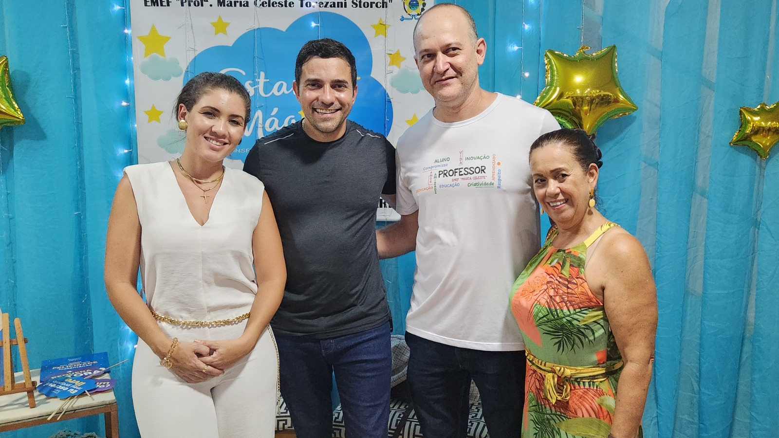 Entre os presentes estavam o prefeito Tiago Rocha, a Secretária de Assistência Social Marcella Rossoni, a Secretária de Educação Marlene Teixeira, pais, professores, a equipe pedagógica e comunidade. Durante a noite, cada aluno teve a chance de autografar sua criação, deixando marcado esse momento especial na história da escola.
