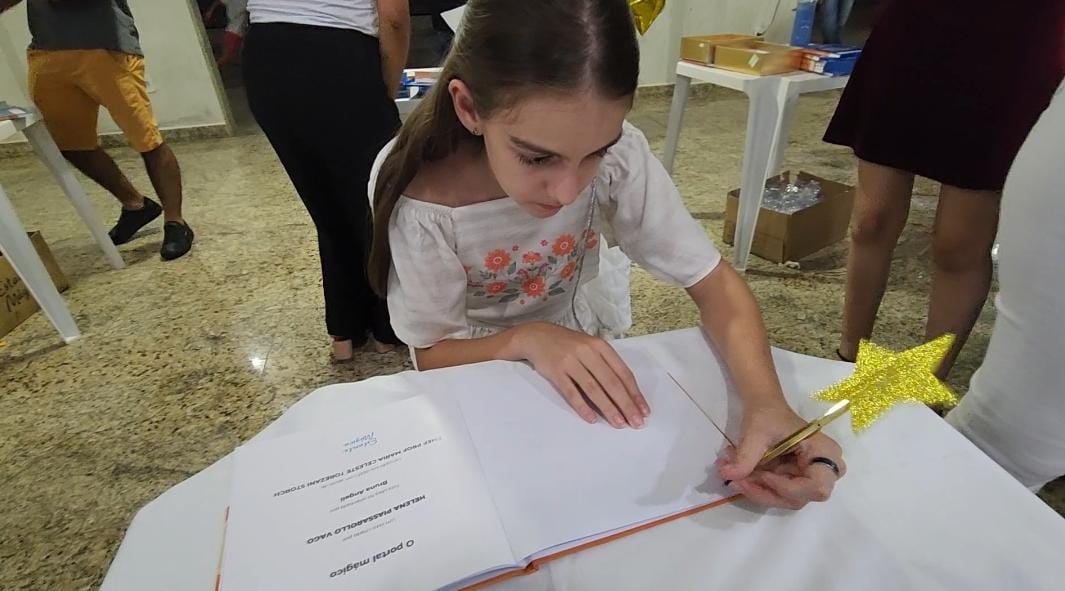 Na noite de ontem (28), a comunidade escolar da EMEF Prof. Maria Celeste Torezani Storch reuniu-se no Lions Clube de São Gabriel da Palha para celebrar a ‘noite de autógrafos’ dos alunos. Neste evento especial, os estudantes lançaram seus próprios livros, tornando-se autores e protagonistas de uma noite marcante.