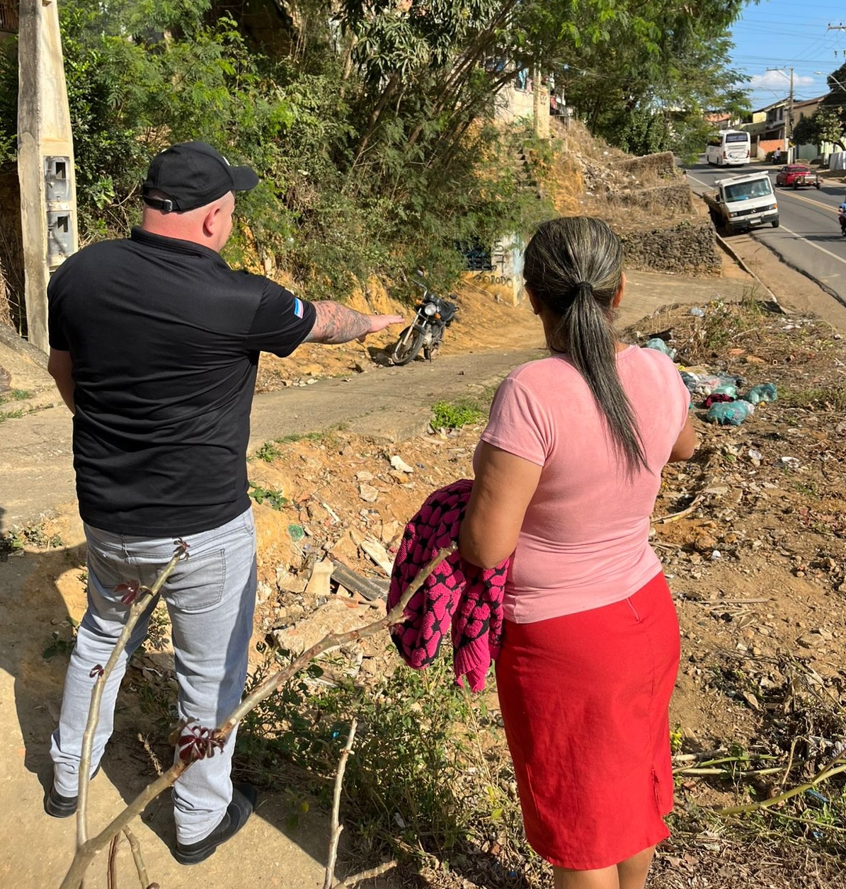 Durante a visita, o parlamentar conversou com moradores e percorreu trechos da Rua Projetada 03 e outras vias do bairro. Entre os pontos observados, estão a necessidade de serviços de limpeza, nivelamento de áreas, instalação de corrimão e melhorias na infraestrutura local.